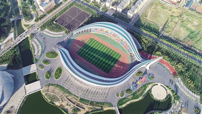 这是5月27日拍摄的河北省黄骅市天健湖共享体育场(无人机照片)。
