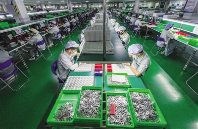 6月9日,在位于江苏省常州市钟楼区的江苏精研科技股份有限公司,工人们在生产车间进行生产作业。