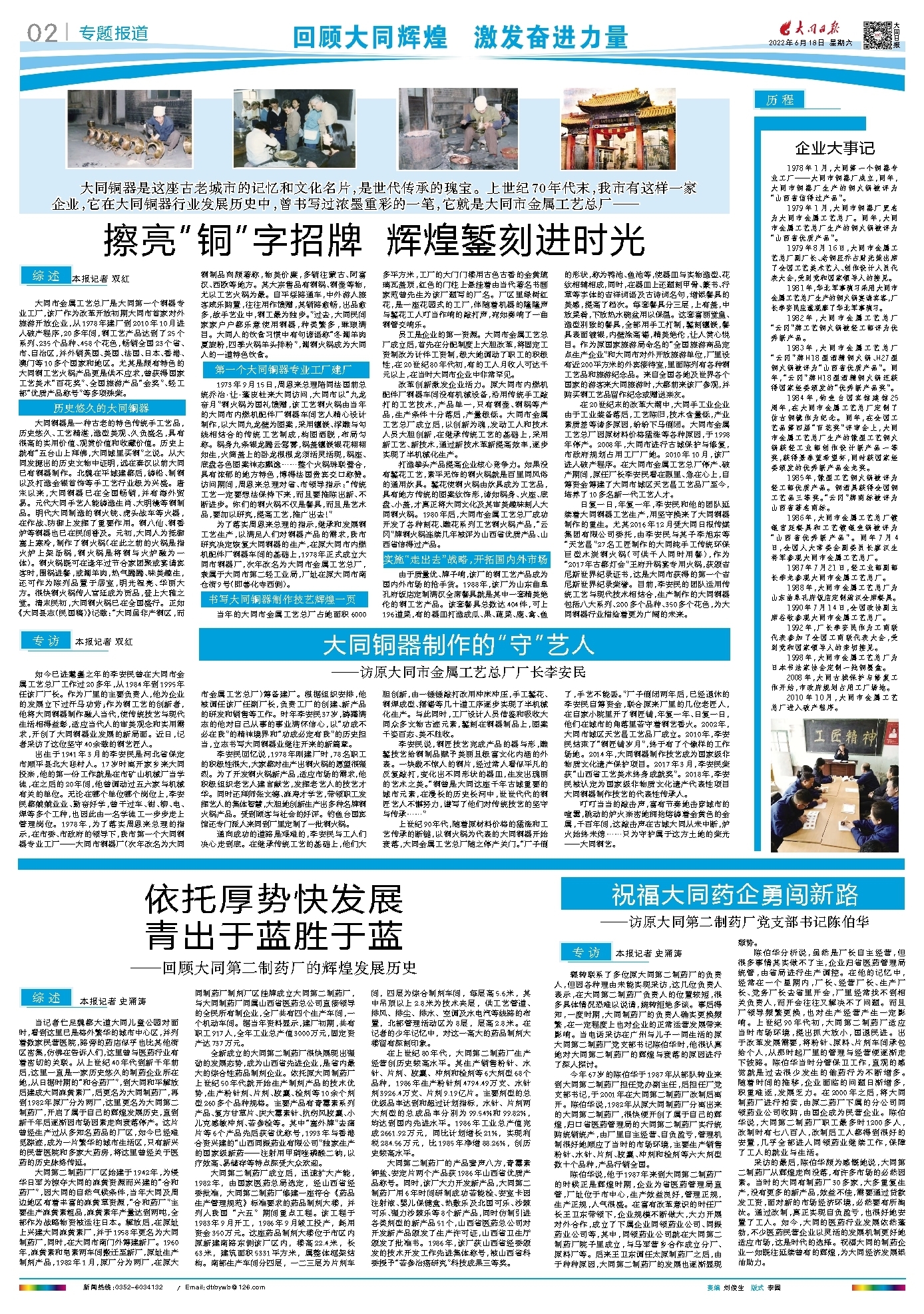 大同铜器是这座古老城市的记忆和文化名片,是世代传承的瑰宝。上世纪70年代末,我市有这样一家企业,它在大同铜器行业发展历史中,曾书写过浓墨重彩的一笔,它就是大同市金属工艺总厂—~~~