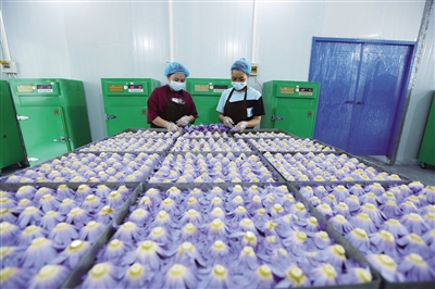 6月28日,在赤水市宝源乡玉丰村,工人在加工香水莲花。