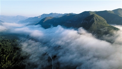 当日,位于太行山深处的河北省邢台市天河山景区出现云海景观,云雾在崇山峻岭间奔涌流动,气势磅礴。 新华社发(陈雷 摄)
