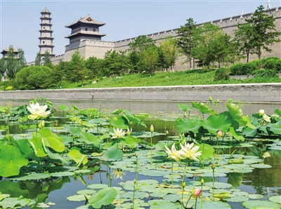 河上泛舟,观荷赏莲,脸庞微风轻拂,水中锦鲤成群。目前,大同古城护城河内睡莲、荷花已开始绽放。微风拂过,阵阵花香扑鼻而来,小船穿梭在绿叶和荷花间,一幅人在岸上走,水在桥下流,船在花中游的惬意画景在护城河呈现。