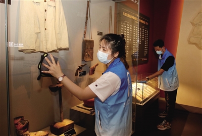 7月6日,大同云中青年社会服务协会和云州一中团委组织40名青年志愿者走进大同红色记忆馆开展志愿服务活动。活动中,大家分工协作打扫馆内外卫生,让红色记忆馆以崭新的姿态迎接前来参观的游客。 本报记者 韩堃摄