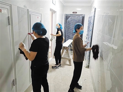 走进开源·金懋府,高颜值的外立面、宽敞的楼间距、优雅庄重的法式风格建筑与多重立体景观园林融为一体,讲求心灵的自然回归感,这些都是业主居住舒适度的有力保证。但在建筑施工过程中,往往会留下很多建筑垃圾,地面、墙壁上还会遗留下水泥浆块、油漆、玻璃胶、水渍等,这些都需要经过专业技术培训的保洁人员,使用专业的设备、工具、清洁剂等进行开荒清洁。悦家物业开荒小队按照制订的清洁方案,分组认真、细致地打扫。擦拭栏杆、清理胶渍、清洗地面、楼层除尘……每一个细节,每一个流程,大家都严格按照标准执行,清洁到位,不留死角。