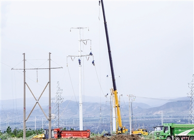 近日,集大原高铁大同段马铺山隧道110KV电力迁改工程完工。马铺山隧道是大同段的控制性工程,御井线110KV电力线路距隧道入口100米,严重影响路基施工准备工作,承担迁改任务的大同铁建投公司克服重重困难,组织施工人员争分夺秒,加班加点,拼搏奋战,为全线顺利开工扫除了最大障碍。图为电力迁改施工现场。 本报记者 戎禹仁摄