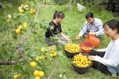 夏日,位于祁连山下的甘肃省酒泉市金佛寺镇的李广杏进入丰收季,吸引游人前来采摘,体验田园风光。李广杏是金佛寺镇的特色农产品,近年来,当地通过搭建电商平台,开展网络直播带货,举办李广杏采摘节等拓宽销售渠道,促进农民增收,助力乡村振兴。 新华社记者 侯崇慧摄