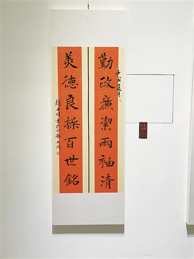 入选本次艺术展的书法作品《勤政美德联》的作者赵丹妮,现任大同市职业教育中心书法教师,山西省书法教育学会会员、山西省青年书法家协会会员、大同市书法家协会会员、大同市硬笔书法家协会会员,并荣获“大同市新时代青年标兵”称号。她的书法作品连续4年入展大同市“劳动者之歌”书画展、山西省硬笔书法协会会员硬笔书法展、山西省女职工书画展等。此外,赵丹妮还多次荣获山西省少儿书画新人新作展优秀辅导教师奖、山西省教育厅“家和国兴”才艺展示活动优秀辅导教师奖、山西省“雏菊奖”青少年艺术大赛优秀指导教师奖。