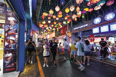 近年来,贵州省贵阳市南明区将青云路纳入夜市“退街入室”规划,在保留城市烟火气息、历史记忆、地域特点等基础上进行升级改造。青云路改造过后不仅保留了“烟火气”,还“变身”成为集文创、餐饮、艺术、服饰、旅游等多种业态于一体的商业步行街,成为贵阳市民和外地游客新的“打卡点”,为城市“夜经济”复苏注入新活力。