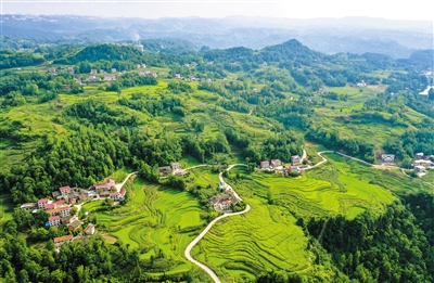 夏日时节,重庆市万州区恒合土家族乡八一村一带的稻田、民居、树木等相映成趣,构成一道道秀美的夏日风景线。近年来,恒合土家族乡统筹协调高标准农田建设和人居环境综合整治工作,积极推动农旅融合,实现了生态、经济和社会效益的“三丰收”,有力助推乡村振兴。