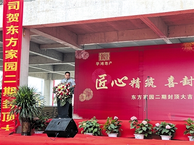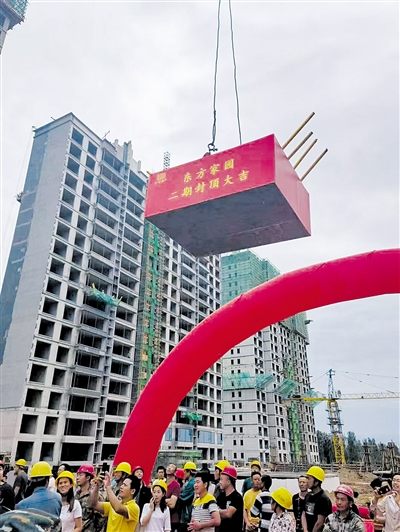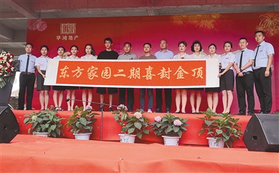 8月8日8时58分,在热闹、喜庆的礼炮声中,东方家园二期喜封金顶。