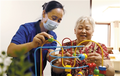 8月9日,邢台市襄都区医疗保障局居家护理服务人员指导老人进行益智动脑训练。