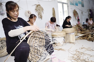 8月9日,在山东省滨州市博兴县锦秋街道湾头村,农民编织传统草柳编工艺品。近年来,山东省滨州市博兴县锦秋街道湾头村充分发挥传统草柳编产业集聚优势,通过网络直播等渠道推动产品销售,带动当地群众在家门口就业,助力乡村振兴。 新华社记者 范长国摄