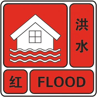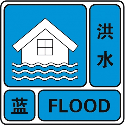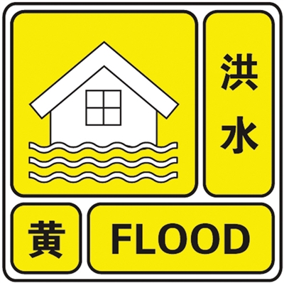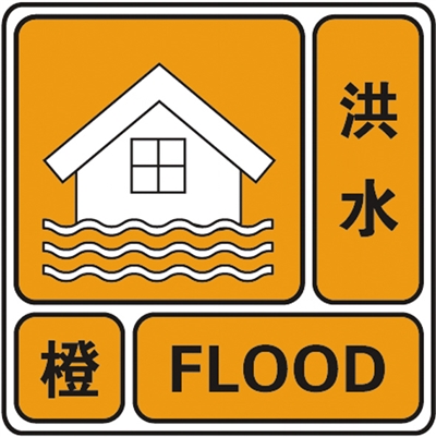 依据洪水量级及其发展态势,洪水预警信号由低至高分为四个等级,依次用蓝色、黄色、橙色、红色表示。