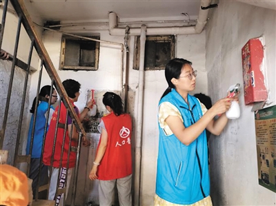 活动中,新悦社区的志愿者们身穿红马甲、蓝马甲,发扬不怕脏、不怕苦、不怕累的精神,借助喷水壶、铲子等工具,对辖区楼道、楼宇门、展板的小广告进行了彻底清理。同时,志愿者们还向附近的居民宣传环境保护、保持卫生清洁的意义及小广告的危害,倡导遇到乱贴乱画现象要及时制止,齐心营造宜居的生活环境。
