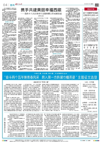 ~~~—党的十八大以来对口支援西藏工作成就综述