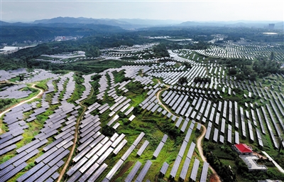 空中俯瞰陕西洛南的“光伏农场”(8月19日摄,无人机照片)。