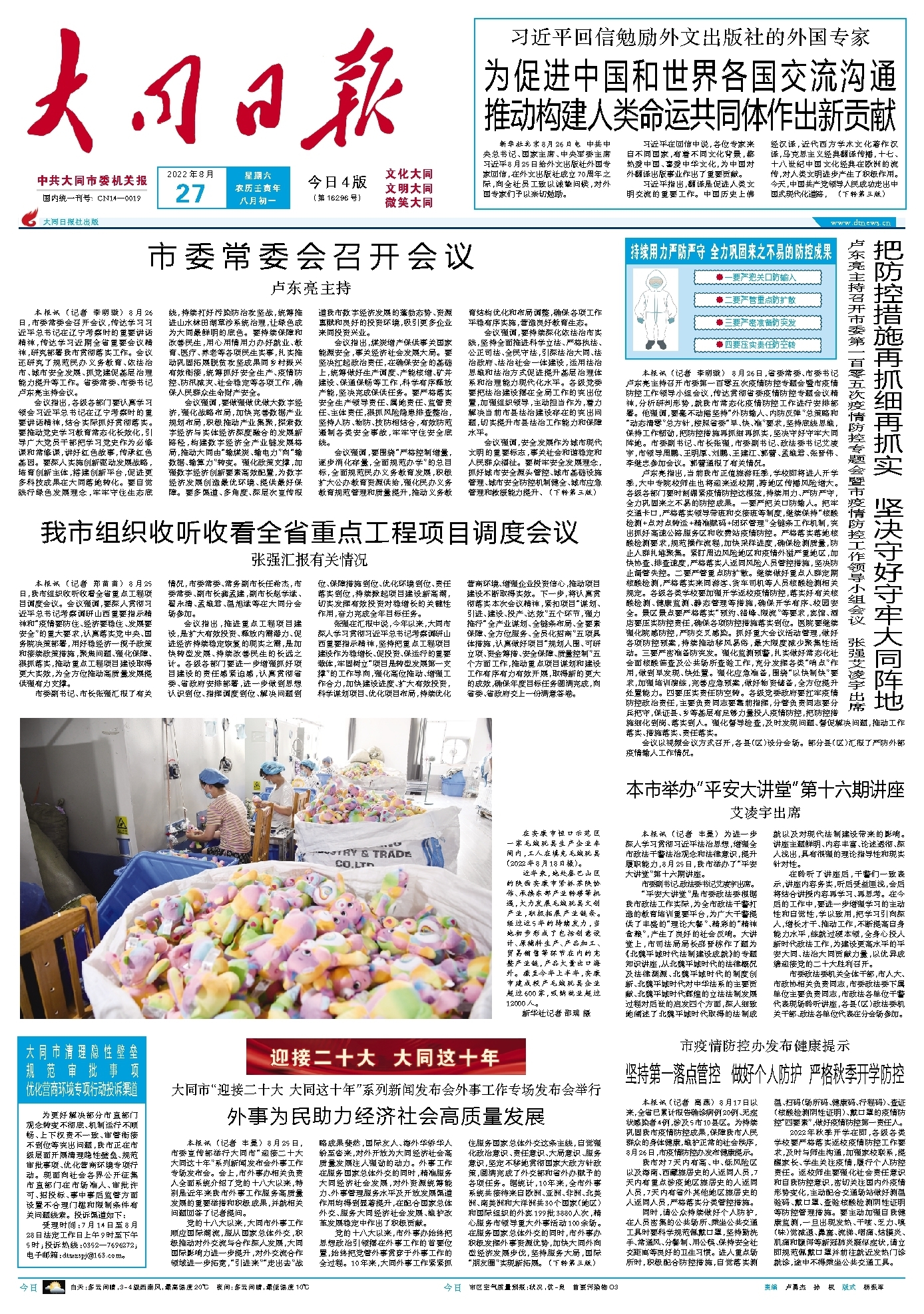 本报讯 (记者 郑苗苗) 8月25日,我市组织收听收看全省重点工程项目调度会议。会议强调,要深入贯彻习近平总书记考察调研山西重要指示精神和“疫情要防住、经济要稳住、发展要安全”的重大要求,认真落实党中央、国务院决策部署,用好稳经济一揽子政策和接续政策措施,聚焦问题、强化保障、狠抓落实,推动重点工程项目建设取得更大实效,为全方位推动高质量发展提供强有力支撑。