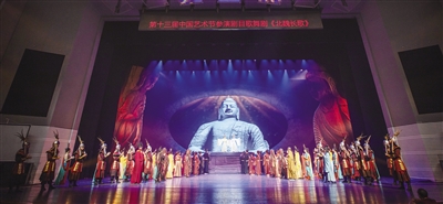 中国艺术节是我国规格最高、规模最大、最具影响力的国家级文化盛会。第十三届中国艺术节以“喜迎二十大 奋进新征程”为主题,坚持“艺术的盛会、人民的节日”办节宗旨,以线上、线下相结合的方式进行,全国共有26部剧目参演,其中13部为晋京演出剧目,演出时间为8月29日至10月28日。《北魏长歌》是全省唯一参演剧目,是本届艺术节的首场演出剧目,也是唯一一部由地方艺术院团创排的艺术节参演剧目。