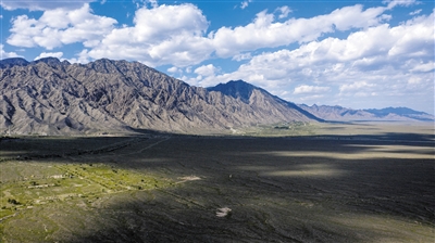 初秋时节,位于宁夏银川市的贺兰山上空白云飘荡,景色宜人。