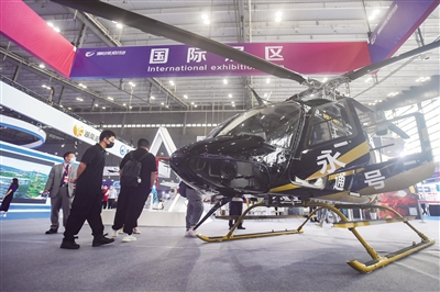 这是9月1日在湖南长沙国际会展中心拍摄的博览会上的一架直升机。当日,2022湖南(国际)通用航空产业博览会开幕。本届博览会以“通航引领美好生活”为主题,包括静态展和动态展。静态展位于湖南长沙国际会展中心,由通航制造、通航应用、通航服务等板块组成。动态展位于湖南株洲芦淞机场,通过飞行表演展示多种通用航空器的应用场景。 新华社记者 陈泽国摄