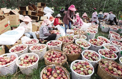 近年来,当地政府调整农业产业结构、大力推广现代农业经营理念,在稳定粮食生产的基础上,不断巩固苹果、花椒、核桃等优势产业,建成全国优质农产品供应基地。 新华社记者 江宏景摄