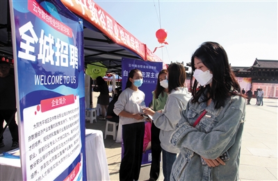 9月3日至4日,平城区就业和人才服务中心在华严广场举办了2022秋季大型招聘会。本次招聘会共有100余家企业参加,涵盖了房地产、餐饮、传媒、教育等多个行业领域。据统计,招聘会期间有800余名求职者与企业初步达成就业意向。 本报记者 韩堃摄