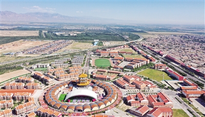 这是9月7日拍摄的第二届中国(宁夏)国际葡萄酒文化旅游博览会开幕式举办地——宁夏银川市闽宁镇(无人机照片)。