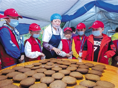 9月3日,50余名大同日报小记者来到亲水湾·龙园小区物业楼前,零距离参观传统月饼的制作加工过程,学习食品安全知识,了解中秋节的由来及相关习俗。