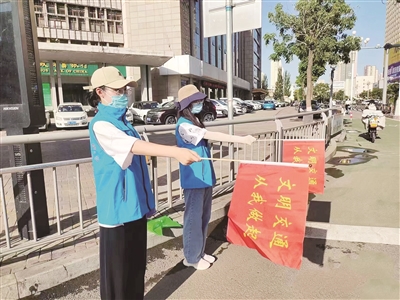 据了解,为有效解决行人、非机动车显见性交通违法,非机动车停放无序、不规范,文明交通劝导力量不够,文明交通出行宣传力度和氛围不足等问题,该区各街道组织社区(村)工作人员和志愿者们以主次干道、主要交通路口、学校、医院、商业中心道路为重要劝导点,对行人横穿马路、骑行电动车不戴头盔等不文明行为进行劝阻,引导非机动车和行人各行其道、遵守交通信号,不闯红灯、不乱穿马路和翻越隔离栏,劝导电动自行车、摩托车驾驶员规范佩戴头盔,自觉遵守交通法规,维护交通秩序。同时,帮助老弱病残群众安全通过路口,不断提升志愿服务水平,弘扬文明出行理念。