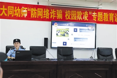 本报讯(记者 解慧)为进一步加强平安校园建设,提高师生防范意识和自我保护能力,有效预防电信网络诈骗和校园欺凌,筑牢校园安全防线,近日,大同市幼儿师范学校联合市公安局巡特警支队特勤大队,组织开展“预防电信网络诈骗及校园欺凌”专题宣传教育活动。