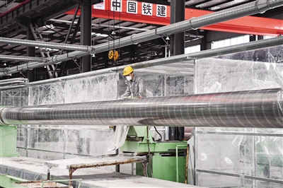 9月20日,工人在中国铁建北碚竹缠绕复合管生产基地作业。2021年1月,位于重庆市北碚区的中国铁建北碚竹缠绕复合管生产基地正式投产。目前,该基地年产能约9000吨、产值约2亿元,成为推动北碚区经济高质量发展的新动力。竹缠绕复合管是以竹材为主要原料,通过缠绕工艺制成的复合管产品,具有重量轻、强度高等特点。新华社记者 王全超摄