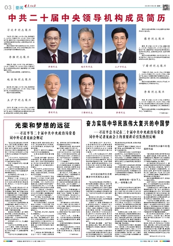 党的二十届一中全会产生中央领导机构 习近平任中共中央总书记中央军委主席