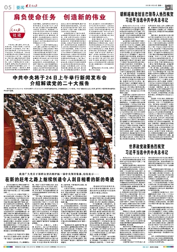 中共中央将于24日上午举行新闻发布会 介绍解读党的二十大报告
