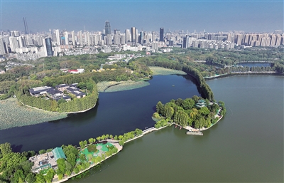 位于长江之滨的武汉被誉为“百湖之市”“湿地之城”,是一座伴水而生的城市,也是全球同纬度地区和长江中下游湖泊型湿地的典型代表。武汉境内江河纵横、百湖密布,拥有165条河流、166个湖泊,全市湿地面积约为16.24万公顷,占区域面积的18.9%。