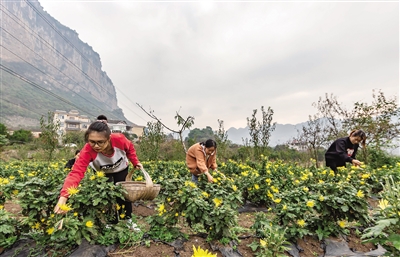 11月7日,村民在贵州省黔西市大关镇丘林村采摘金丝皇菊。