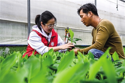 近年来,广西兴业县坚持人才下沉、科技下乡,组建专家团队,实现科技专家服务团对全县所有乡镇、科技特派员对所有脱贫村全覆盖。截至目前,兴业县科技特派员已进驻30多个创业示范基地,助力乡村振兴。 新华社记者 曹祎铭摄