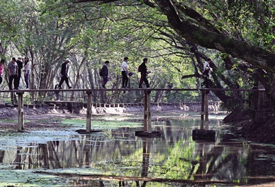 11月12日,游客在黄山市徽州区西溪南镇西溪南村游览。