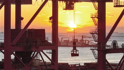 入冬以来,由于煤炭吞吐量增加,河北唐山港积极采取措施,加大煤炭装运力度,确保冬季用煤需求,煤炭码头一片繁忙景象。图为11月13日拍摄的唐山港京唐港区煤炭码头晨景(无人机照片)。 新华社发 (刘满仓摄)