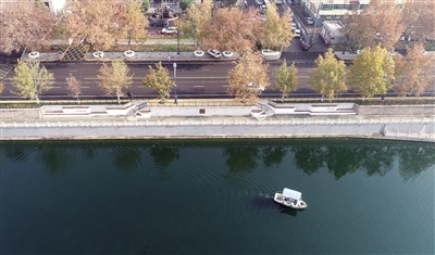 近年来,河北省石家庄市井陉县坚持“绿水青山就是金山银山”的发展理念,对境内金良河、绵河等河道进行清淤疏浚、修建堤坝、水源涵养、生态补水等生态治理与修复工程,提高水体自然净化能力,维护河湖生态平衡,实现水清、岸绿、景美的山水生态美景。图为11月19日,工作人员在河北省石家庄市井陉县金良河清理河道杂物(无人机照片)。