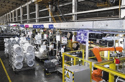 这是11月25日在重庆海尔洗衣机有限公司生产车间拍摄的作业现场。
