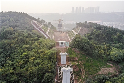 这是11月28日拍摄的建设中的渝昆高铁川渝段华福大桥(无人机照片)。