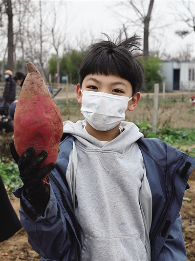初冬时节,河南郑州一所学校的学生们在老师带领下开展“红薯丰收节”劳动实践活动。