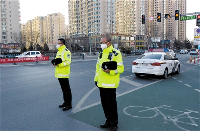12月6日上午10时,御河西路迎宾街十字路口,执勤交警肃立默哀。 本报记者 戎禹仁摄