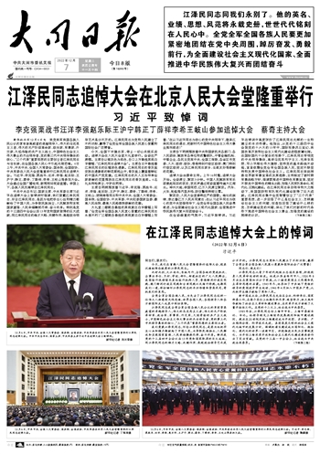 江泽民同志追悼大会在北京人民大会堂隆重举行