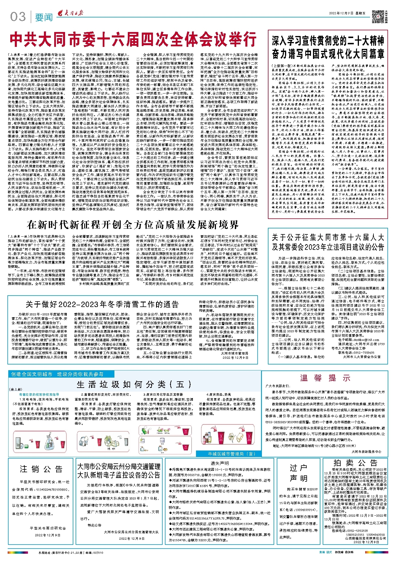 深入学习宣传贯彻党的二十大精神 奋力谱写中国式现代化大同篇章