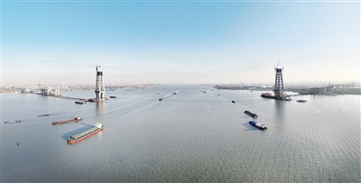 12月19日,常泰长江大桥主塔施工如火如荼(无人机照片)。