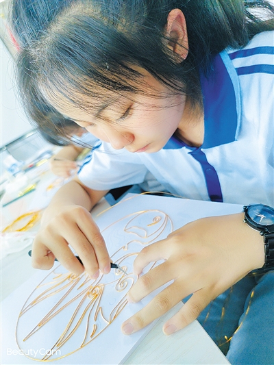 掐丝珐琅画工艺复杂、色彩流畅、图案细腻,给人以视觉上的震撼。活动现场,老师为同学们介绍了“掐丝珐琅画”的特点以及制作工艺。从绘画,到点胶、掐丝、点蓝、上漆等八道工序,学生们都制作得十分认真,完整地呈现出一幅幅令人赞叹的作品。