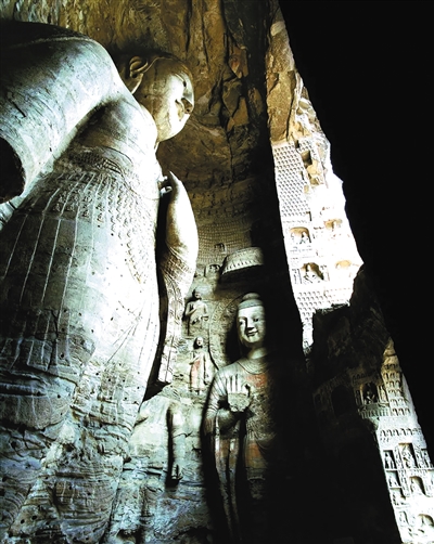 据宿白先生发现的《大金西京武州山重修大石窟寺碑》记载,辽代自重熙十八年(公元1049年)重修石窟寺起,至天庆十年(公元1120年)为止,在武州山石窟寺的维修、兴建工程持续了70余年。大康四年(公元1078年),仅张氏妻子便发愿建造了“大小一千八百七十六尊”造像。金代为了保护石窟寺院,甚至将武州川改了河道。云冈石窟几大洞窟内的主像镶嵌眼珠,或者就是这一阶段完成的。