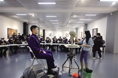 1月8日下午,市消防救援支队平城区大队举办喜迎新春主题党日活动,百余名消防指战员走进市雕塑博物馆,参观正在展出的《天下黄河》油画展。图为消防指战员跟随老师体验泥塑创作。 本报记者 韩堃摄