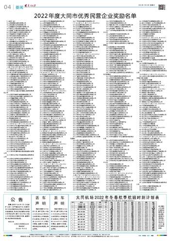 2022年度大同市优秀民营企业特殊贡献奖励名单